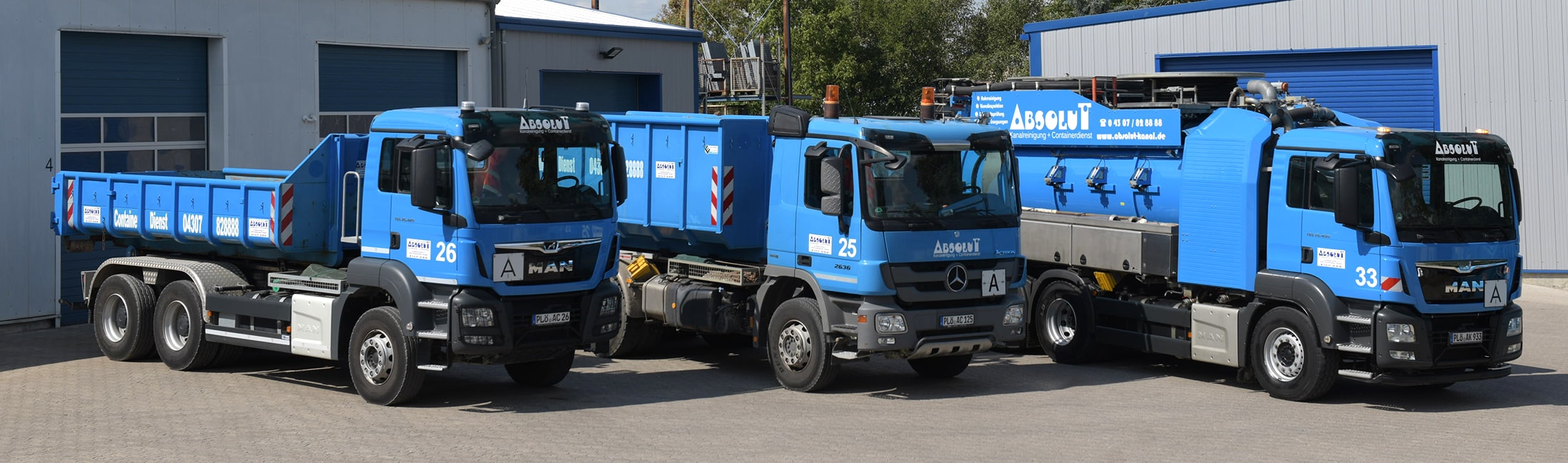 Die ABSOLUT-Fahrzeugflotte leistet beste Dienste rund um unser Dienstleistungsangebot. Vom Spül- und Saugfahrzeug bis zum Containerfahrzeug für unsere Abrollcontainer ist die perfekte Ausrüstung für jeden individuellen Auftrag sofort zur Stelle.