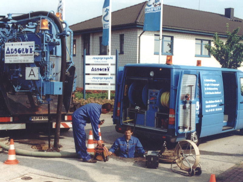 Nachdem die Norbert Szupryczynski Tiefbau GmbH bereits zwei erfolgreiche Jahrzehnte in den Bereichen Erd-, Kanalbau- und Kanalsanierung tätig war, kommt es im Jahr 1995 zur Gründung eines zweiten Unternehmens – der Firma ABSOLUT Kanalreinigung & Containerdienst.